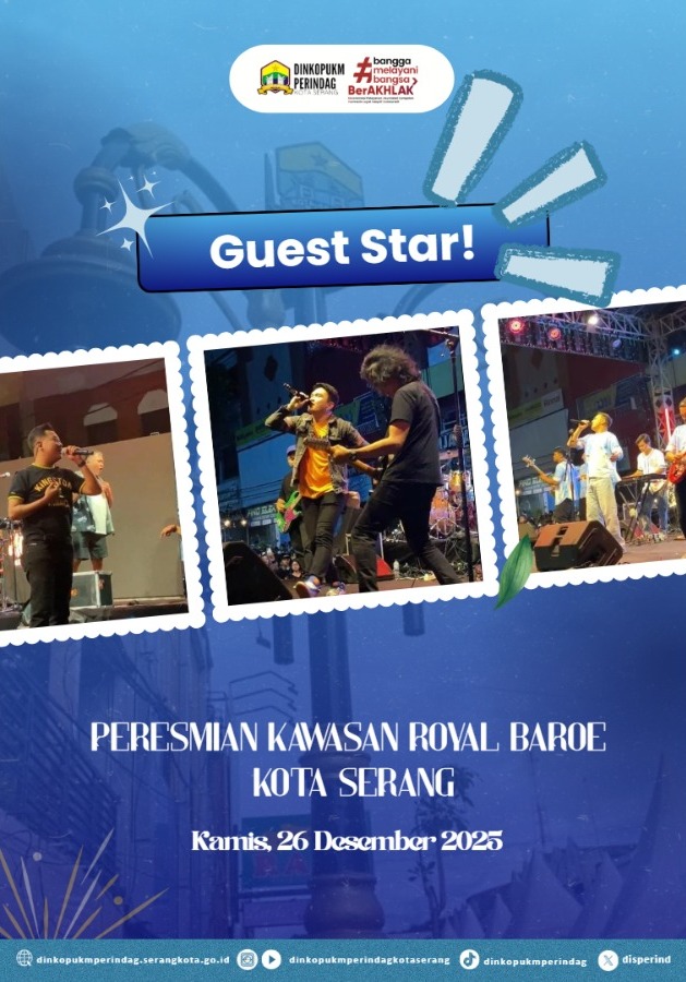 Pemerintah Kota Serang bersama Dinas Koperasi, UKM, Perindustrian, dan Perdagangan Kota Serang meresmikan Royal Baroe pada Kamis, 26 Desember 2025 sebagai langkah nyata mendorong pertumbuhan UMKM dan penguatan ekonomi lokal Kota Serang.